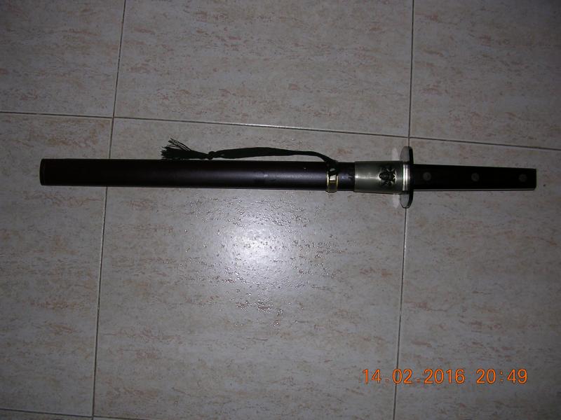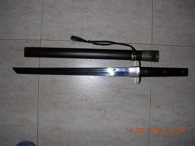Hace unos días conseguí mediante un camio con un amigo socio de mi club de tiro y forero de esta página, este ninjato, no lleva marca pero un buen amigo profesor de artes marciales lo ha visto y dice que el acero es muy bueno y que seguramente es de Toledo, ya que las cachas de la empuñadura son de madera, mi amigo el que me lo ha cambiado me ha dicho que lo tenía hace 40 años, era de un coreano profesor de artes marciales, no es ornamental y el corte es perfecto.