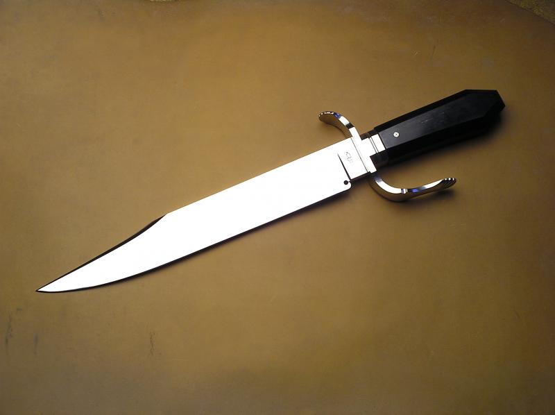 Me gusta todo de él, esa guarda bien dimensionada y con ese remate,la hoja,el.cabo tipo ataud y la funda a su altura.