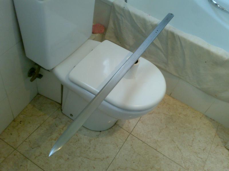 He hecho una espada a modo de prueba, para practicar. La hoja es tipo bastarda pero sin vaceo ni nada. El mango está por terminar.