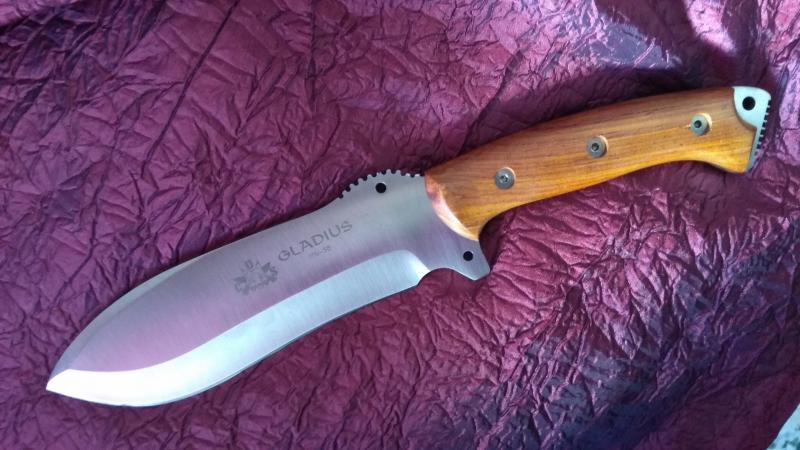 Me deje llevar por sus lineas bonitas y la fama de la marca que se dio con publicidad masiva de cierto foro en alquel entonces. Lo recibi con mucha ilusion (que no se diga que ya iba con animo de criticas destructivas, si fuera asi no lo habria comprado) y desde ese momento hasta ahora sigo pensando que sin duda parece un cuchillo robusto y fuerte que no se partira con facilidad, pero ya en aquel entonces los acabados no me parecieron muy finos, el vaciado y afilado eran muy toscos, la punta nada simetrica y tosca tambien, resumiendo no tenia el perfil de un cuhillo de corte fino. Y al poco tambien me percate (y lo sigo pensando) que el acero no es muy duro, para afilar, la lija o pierda le entra muy facil y reforme la punta con una lima vieja con demasiada facilidad, y por supuesto el filo lo pierde bastante rapido, y conste que apenas lo uso. Ademas comparandolo con otros que tengo (nieto, muela, cudeman) el sonido del acero al golpearlo o afilarlo ya te dice que es menos duro que los demas. Sera un acero resistente a romperse, eso no lo niego, pero para corte no es muy bueno, en el proximo jabali que pille le dare una oportunidad a ver que tal. Tambien hay que mencionar lo que ya se ha hablado mas de una vez, y es el mango, si eres de mano tirando a grande se queda algo pequeño, le "falta cuerpo".