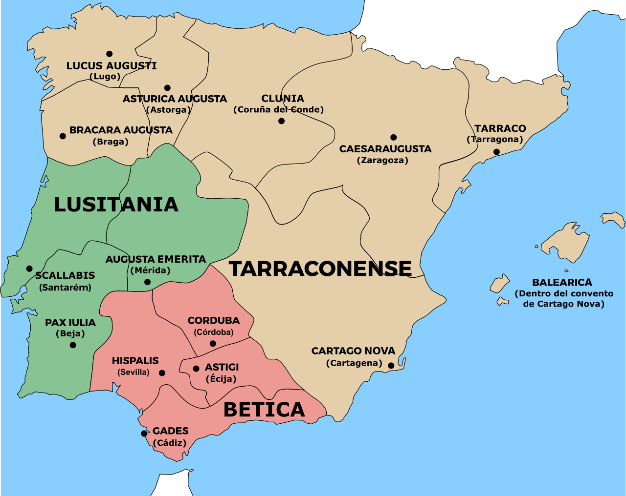 División territorial de Augusto, 27 a.c. (Capital de Tarraconensis: COLONIA IVLIA VRBS TRIVMPHALIS TARRACO, actual Tarragona):