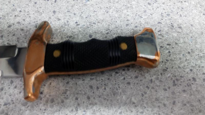 Buenas compañeros, tengo un cuchillo Cudeman al cual pinté de negro la empuñadura dorada hará como 20 años.