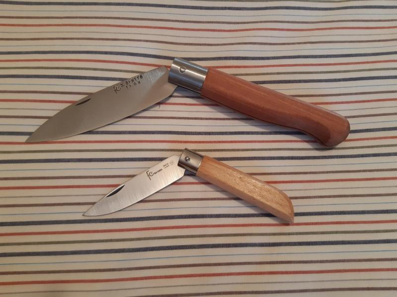 Yo diría que en lo único que mejoran claramente a éstas las Opinel es en su famoso sistema de seguro, del que las de Don Benito carecen. Las hojas me parecen de pulido más simple pero calidad comparable (habrá que probarlas un tiempo para ver cómo retienen el filo, claro), y aunque las maderas parecen quizá más blandas en las de Don Benito (la de haya desde luego, la cabritera que puede ser de algún tipo de conífera, no tanto) mientras no las maltrates mucho te debería dar igual.