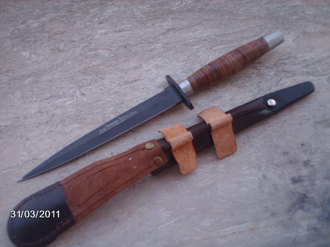 Partiendo de este punto, yo tengo dos Fairbairn & Sykes: Una fabricada por John Nowill & Sons, en Sheffield, England, con marcaje de la Intendencia Británica, y una Stilleto. Ambas cortan como cuchillas en los filos de sendas mesas, y pinchan como un alfiler.