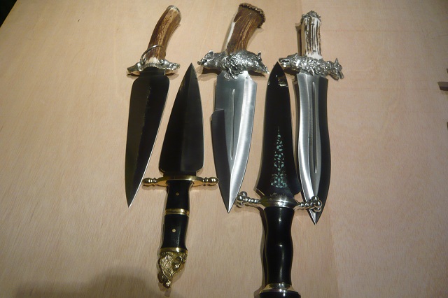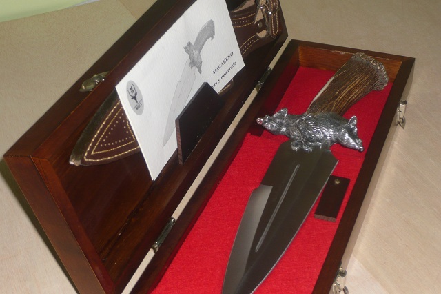 Recuerdo ya hace unos cuantos años, que un cazador anciano quería rematar a un macho de jabalí con un cuchillito (el que había siempre empleado él) de menos de 20 cms. Yo le dije: "toma, hazlo con éste y correrás menos peligro"; él, mirándome con cara de incredulidad, me dice: "esa espada no sirve para nada, Jordi".