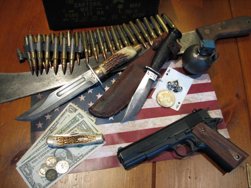 Ese SOG Bowie tan genuinamente "Apocalipsis Now" y el Ontario encabado en asta, junto a una inmortal 1911, me han cautivado especialmente.
