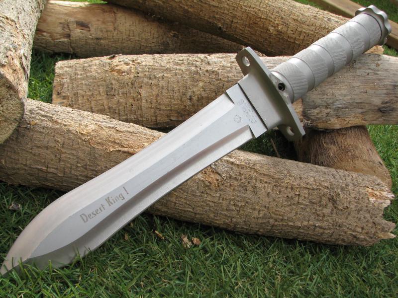El Desert King hasta hace relativamente poco no sabía que existía. De haberlo sabido antes... hubiese sido mi "segundo" cuchillo de remate (llamadme maniático pero es que prefiero para esos menesteres los veintimuchos centímetros de hoja a los veinte del Aitor). Todo y no poderle poner ni un solo "pero" a mi sufrido Joker Ñu con cachas de asta de ciervo, es que me encantan los pinchos.