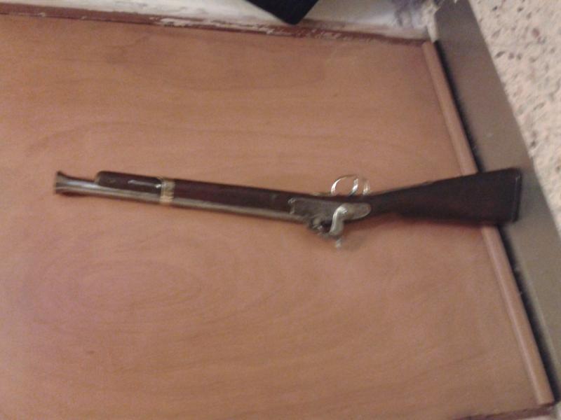 bienvenido al foro suso yo encontre al retejar el tejado de la casa del abuelo de mi mujer en galicia un fusil de infanteria española de avancarga segun la fecha inpresa en la llave es de 1854 carecia de nº de serie lo limpie abrillante y puli lo lleve a la guardia civil y simplemente les dije la verdad de donde me lo encontre, despues de un mes me avisaron de que como carecia de nº de serie lo tenian que mandar a eibar al bope, asi que para alli se fue una vez pagados los portes de ida y vuelta y las tasas para pasar el banco de pruevas y mes y medio de espera me avisaron de mi intervencion y ahora soy el feliz propietario de un fusil de avancarga de 1854 modificado a trabuco (vete tu a saber cuando por que yo me lo encontre asi) del calibre 78, la foto maa salioo un poco chuchurria pero bueno ya se puede apreciar, tu llevalo a la intervencion y que sea lo que dios quiera yo este año me marcho a cazar conejos al pueblo con este que para eso lo he legalizado , animo que los de verde muerden pero lo justo solo si sacas los pies del tiesto si haces las cosas bien no tienes problemas un saludo compañero
