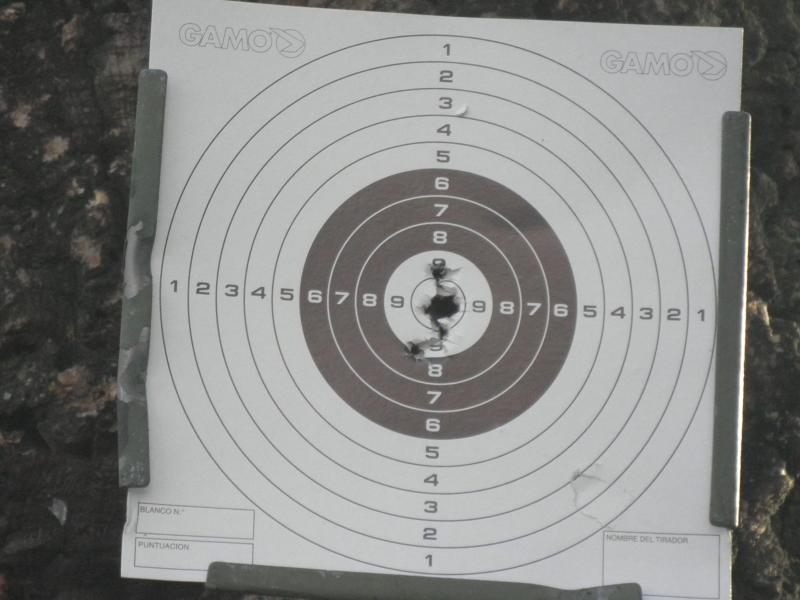 desde luego que hasta que puse el visor s tiro para esta distancia hubo otras mucho peores, pero una vez puesto, un poco más arriba o abajo las agrupaciones no eran malas creo yo.