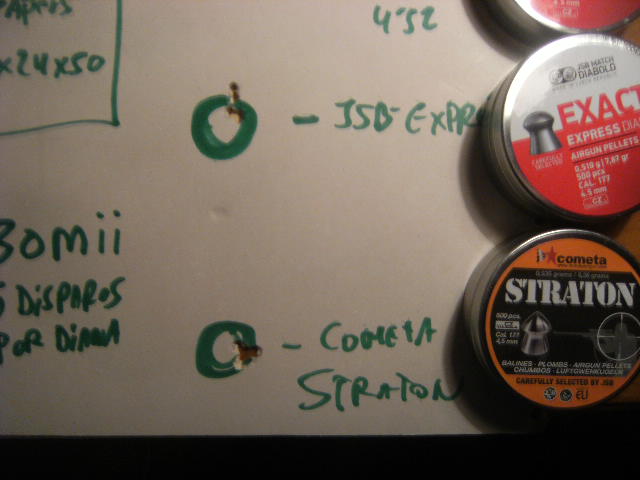 Bueno creo que los grupos están bien , el visor no lo toqué y había estado disparando a 50m el otro dia, no he probado los expreés de cometa , me da la sensación de que los originales van un poco mas finos pero es muy poca la diferencia , seguiré haciendo pruebas.