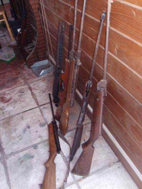 Poco a poco irán saliendo, una vez estén "presentables en sociedad". Un primer vistazo nos muestran una Gamo 45S61 de segunda serie, una Gamo David DS, otra Gamo , modelo 68 (no matic), y un trio de Nóricas, una 61, 62 y "comando".