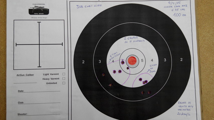 hola . excelentes agrupaciones ! , mas teniendo en cuenta el visor de 11 aumentos , ( yo con esos aumentos y a esa distancia , no veo la diana ) y el calibre , con que potencia estan hechas ? . cometa a dado sus problemas , al igual que hay quien dice maravilllas , hay quien hecha pestes de ella ! , baratas no son ! , fuera aparte , si lo del aire comprimido no tiene mas exito , es porque permitieron que se regulara y legislara tan restrictivamente sobre su uso y eso va a acabar con las carabinas " baratas " , algun dia la gente se cansara de comprar una y hecharla encima del armario , porque lo de tirar cada dia esta mas complicado , excepto para los federados y asociados siempre que un club les quede cerca ! . lo de los productos alemanes sera como lo de seat y wv , etc ... es que cada cual con su dinero , compra lo que le apetece . suerte !!!