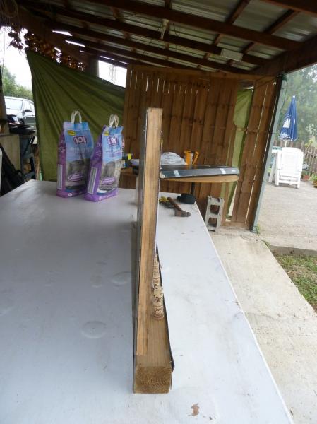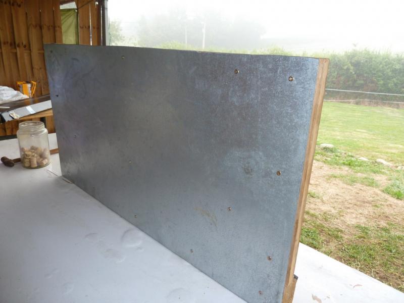 He utilizado una chapa de metal, unas tablas de palet y unos clavos.