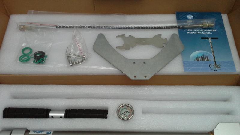 Tiene una pinta impresionante toda en acero inoxidable y aluminio, es mas robusta y mas pesada pero igual de alta que la Hill. Trae una herramienta, dos juegos de juntas para su reparacion y un manual en inglés con fotos bien detalladas.