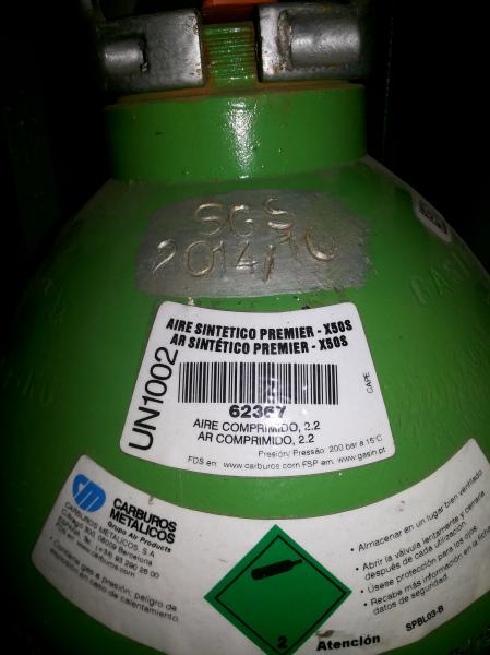 Por otro lado, mi club de tiro cuenta con una zona de aire comprimido donde hay un par de grandes botellas de aire. En su momento pensé llenar la carabina allí, pero un socio me dijo que esas botellas no dan la presión suficiente para usarla con mi carabina y no he comprado una estación de carga para ellas. Les he hecho un par de fotos y las adjunto para ver si alguien me da su opinión sobre si valen o no. Se ve en una de las fotos que pone 200 bares a 15 grados. En definitiva, a ver si lo tengo todo claro: necesito la botella de buceo o, si me valen, las botellas del club, una estación de carga y el latiguillo con el adaptador de la carabina que actualmente lo tengo en la bomba manual.