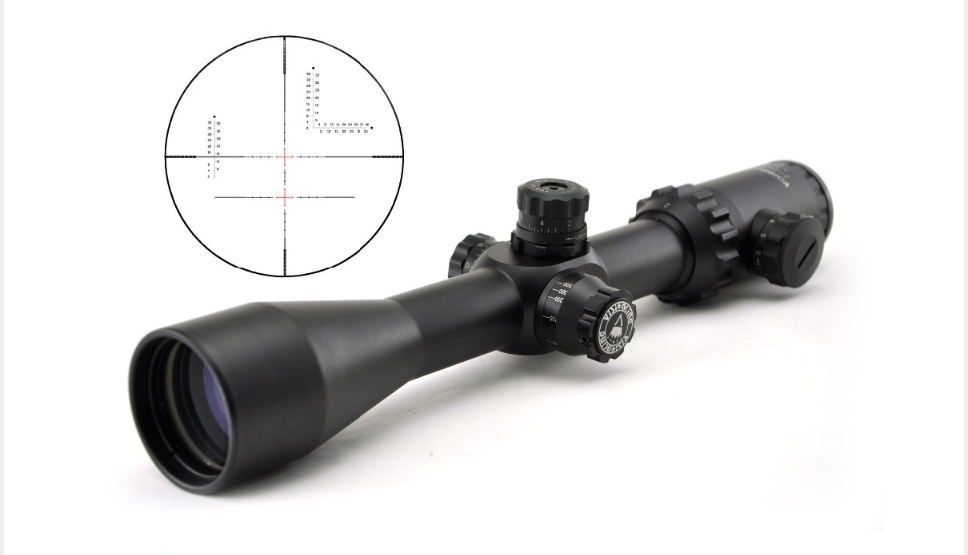 Marcool 6-24X50 FFP, con reticula en primer plano, la relación entre los puntos Mil-Dot, es siempre la misma, independientemente del zoom, muy fácil calcular distancias y caídas del balin. 36 cm de largo. No tiene reticula iluminada, que si las enciendes, parecen arboles de Navidad, ni florituras a mayores.......![]()