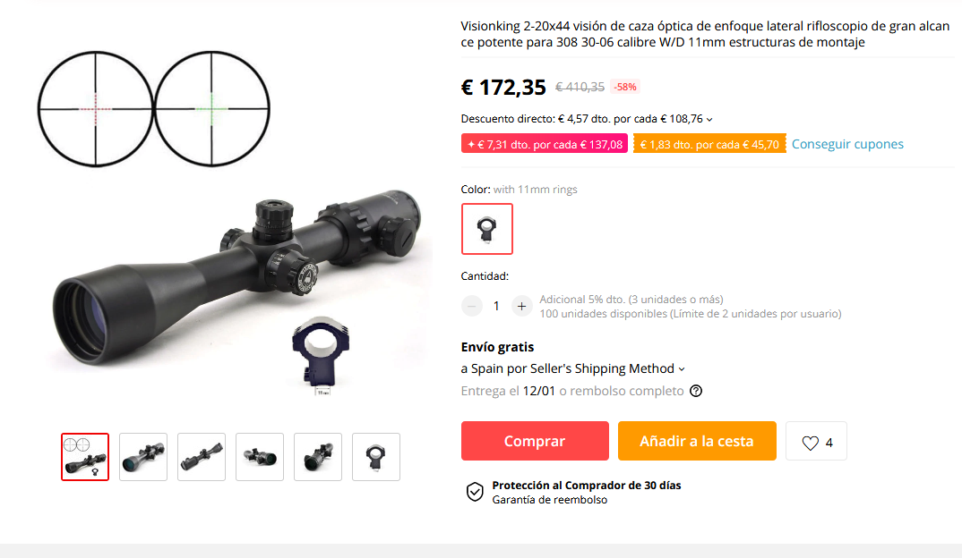 Loas visores de 40 euros de aliexpress los descartaría por completo y sobre todo si son de marcas desconocidas...esos te pueden durar un suspiro...marcas como Visionking, Discovery o Delta Optics hay unos cuantos por el foro y la gente muy contenta con ellos
