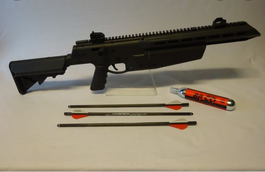Para mí, no es un rifle de aire, aunque el mecanismo funcione como tal. Una ballesta por supuesto que no es. Sin embargo se oueden adquirir arcos de poleas libremente, que tienen mas potencia que este "artefacto" , que al final hacen lo mismo...