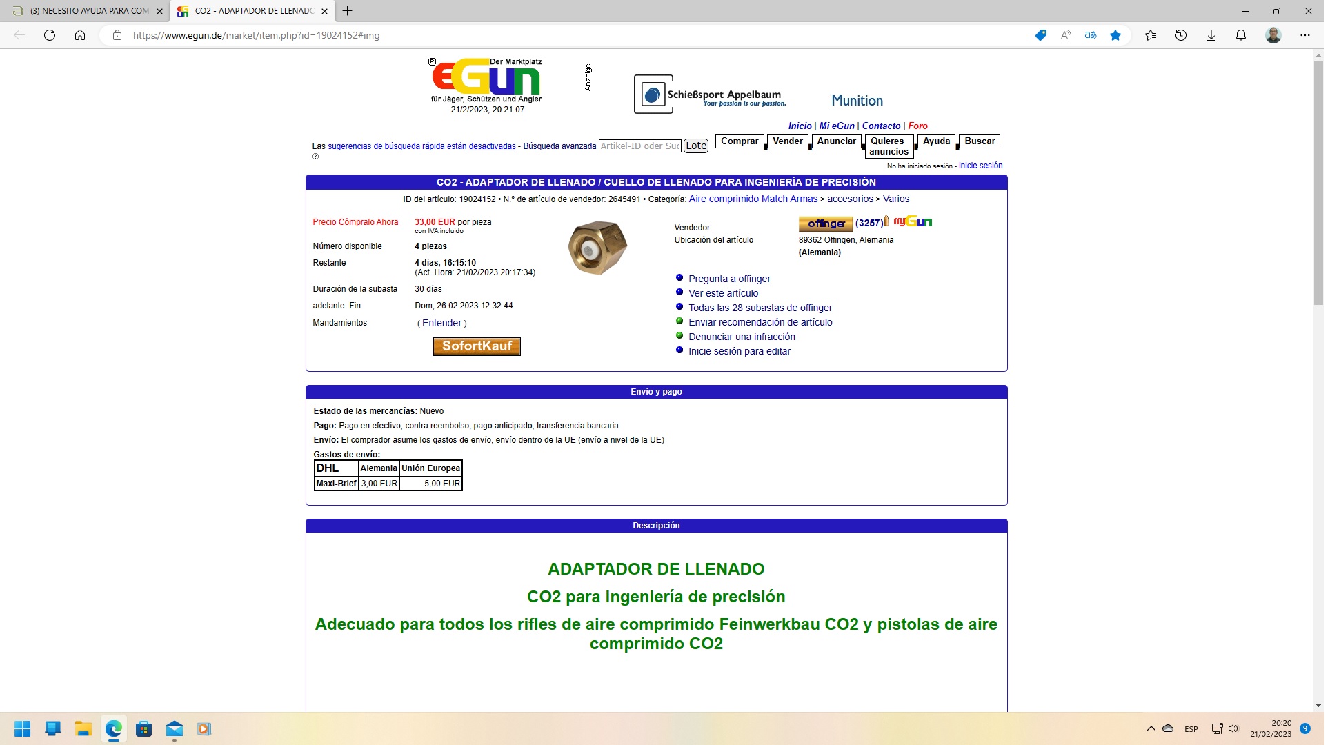 Hola compañero,yo suelo comprar bastante en esta página de subastas alemanas y de momento bastante bien, siempre hay alguna vez que te meten el perro,si te interesa te puedo pasar mi correo electrónico me dices el enlace de lo que buscas y te intento ayudar un saludo,este es mi correo seattoledo1968@gmail.com. y ya si quieres me ponen tu teléfono y hablamos.