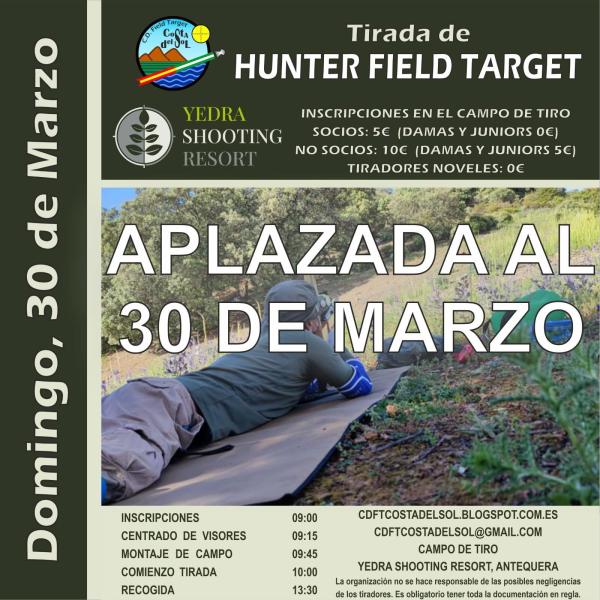 Debido a las condiciones meteorológicas previstas para el fin de semana hemos decidido aplazar la 1ª Tirada de Hunter Field Target, prevista para el día 2 de marzo al próximo domingo 9 de marzo. Disculpad las molestias.