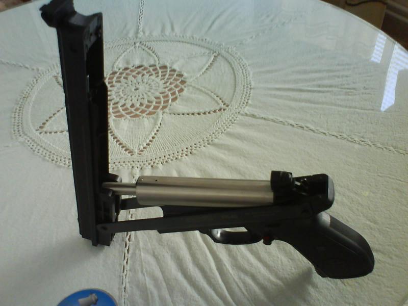Aun así, comparte muchas piezas con ella, ya que el armazón de lo que sería la corredera y el émbolo parecen idénticos, con lo que supongo que el cañón tambien lo será.