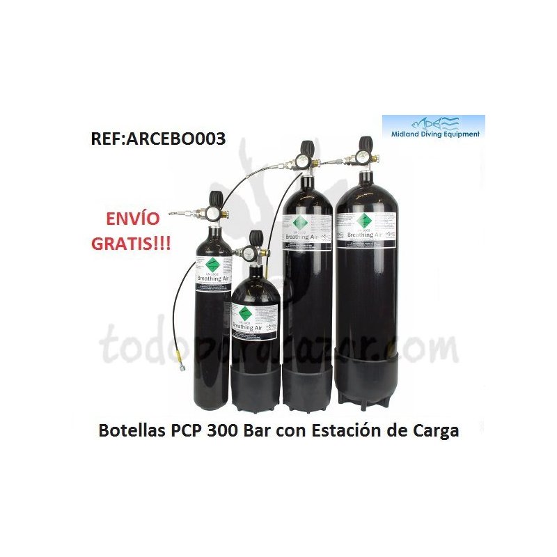 Lo que si te digo, es que no te asustes. Aquí, casi todos los que tienen PCP y tienen un sitio de recarga cerca, utilizan botellas. Ademas de que es normal que las haya en los campos de tiro para cargar las carabinas. Las de tiro olimpico ahora también son de PCP. O incluso los bomberos y los equipos autónomos de respiración también usan botellas de 300 BAR.