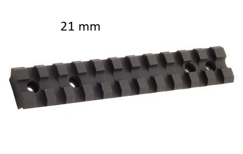 Existe otro carril mas moderno, el usado en las bulpup, y en armas de fuego, que se llama Weaver o Picatinny, muy parecidos, pero con ligeras diferencias, que son de entre 20-21 mm de ancho, y se conocen porque llevan unas ranuras donde hacen tope las anillas, para que no se desplacen por el retroceso, por eso hay anillas para carril de 11 mm, o de 21 mm......