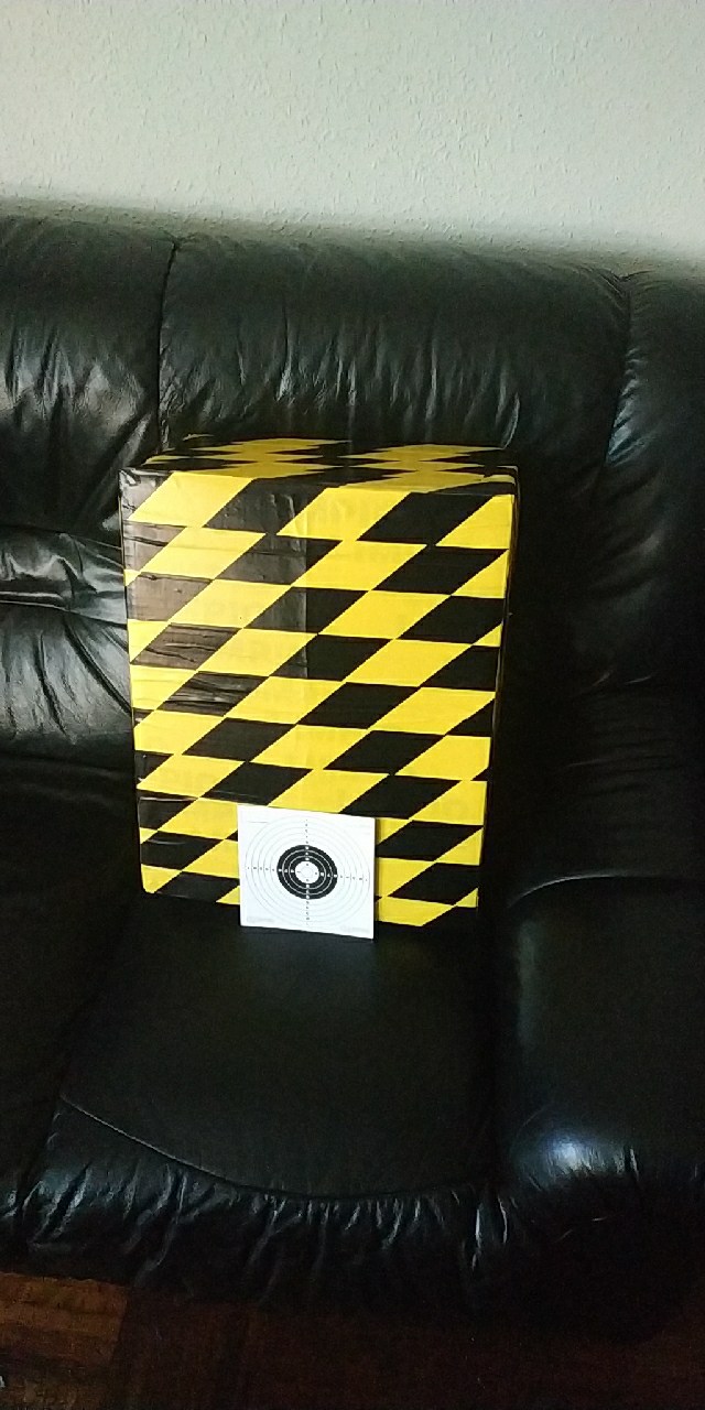 Hola buenas. Pues este es el mio. Le hice con carton y mucha mucha ropa a presion dentro, casi toda de vaqueros, y fundas de trabajo. Todo él empaquetado a presion y encintado con 4-5 capas de cinta adhesiva, que a medida que va deteriorando por los disparos, vuelvo a reponer. Las fotos tienen ya unos meses, ahora esta encintado en blanco. Y el tamaño lo elegí para poderle clavar 2 dianas o un folio tamaño A3.