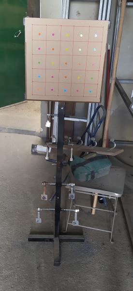 Ahí está el mío. Con chapa de 4mm detrás de las dianas para asegurar que no se rompe. Y los péndulos
