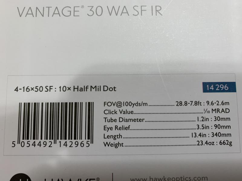 El visor una Hawke de hasta 16 aumentos, que mientras ha funcionado ha sido una maravilla en todos los aspectos.
