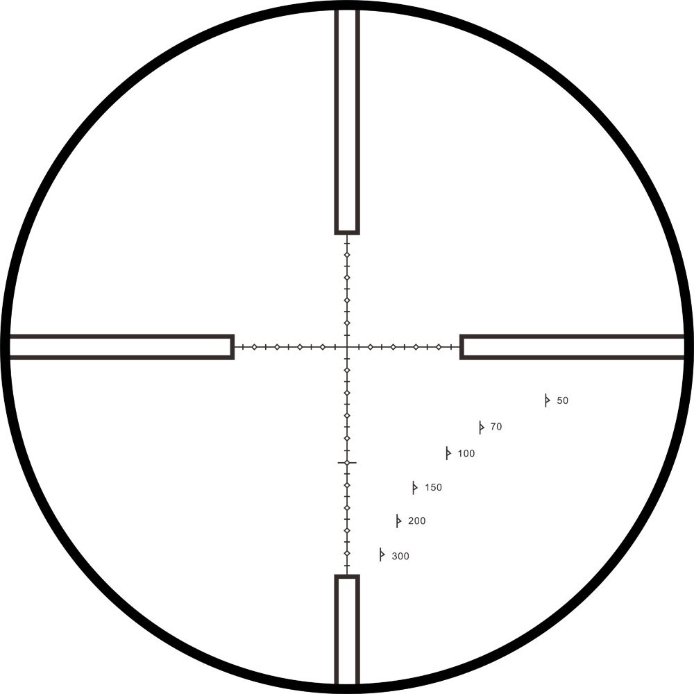 Ademas, es una reticula para tirar lejos de verdad, como los Hawke, pues la parte de abajo de la retícula es larga, para compensar grandes caídas del proyectil. Tambien trae a mayores un telémetro, que es la curva con números de la dcha., pero vamos, que seria útil para caza, o para uso militar, para nosotros, mas bien hace bonito......