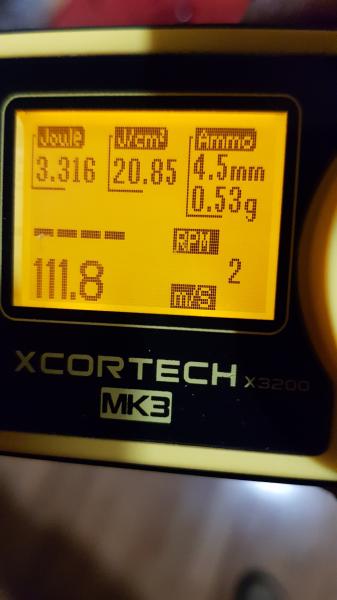 Tu cronógrafo se ve de calidad hare otra prueba encendiendo y apagando a cada disparo, de todas formas son las velocidades que te dicen al comprarla en 5.5 no da para mas.