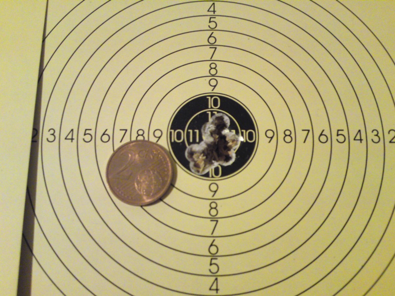 He intentado la prueva con los prometheus porque no tenia skenco, al disparar suena muy fuerte tanto como una carabina de 22lr, y eso que está silenciada, he disparado 12 y en todos el combro me marca error. Tambien pongo una diana a 28 metros en posicion sentado con mesa y bipode, echa hoy en mi garaje.