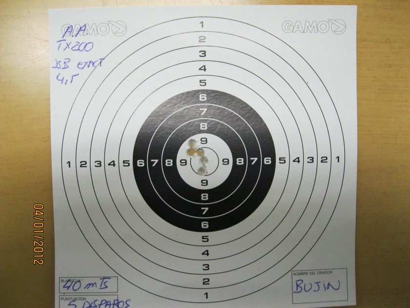 5 tiros a 40 mts, con Jsb exact 4,5, chino tasco 6x24x50.