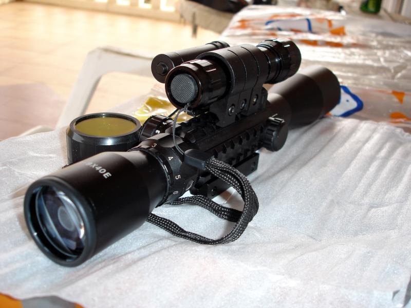 Como ya dije en al principio del hilo, voy a montar una mira china -36 Libras en eBay- de esas que tienen laser y linterna (la compré para fardar con la gamatic), pero como no pude montarla porque queda muy baja y golpeaba con el alza la voy a poner en la Socom.