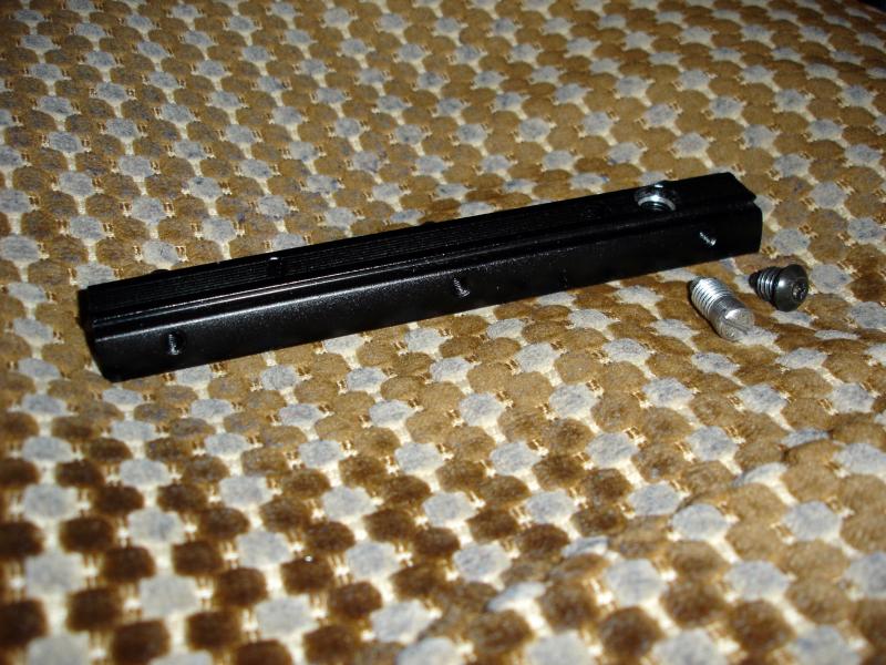 Con paciencia, un taladro de mano y una lima -no tengo torno- he fabricado un tornillo tomando como muestra el original de la guía, modificando el largo para que llegue "más alto" y así poder encajar en la base de la mira. Todo esto ha tenido que ser porque la mira ésta no tiene monturas de anillas ni tetón, es todo una pieza.