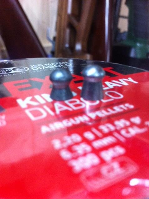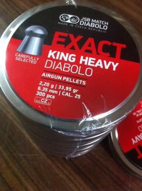 los balines .......he de deciros que nos asombro a todos , es una municion 2,93 grains mas pesada que los conocidos Barracuda de HN , pero lo que nos sorprendio es que la precision la seguia manteniendo como sus hermanos pequeños , los Exac King de 25,39 grains