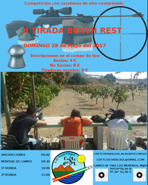 Desde el Club deportivo de Field Target Costa del Sol, ubicado en Mijas (Málaga) os invitamos a la II Tirada BENCH REST 2017 el próximo domingo 28 de Mayo.