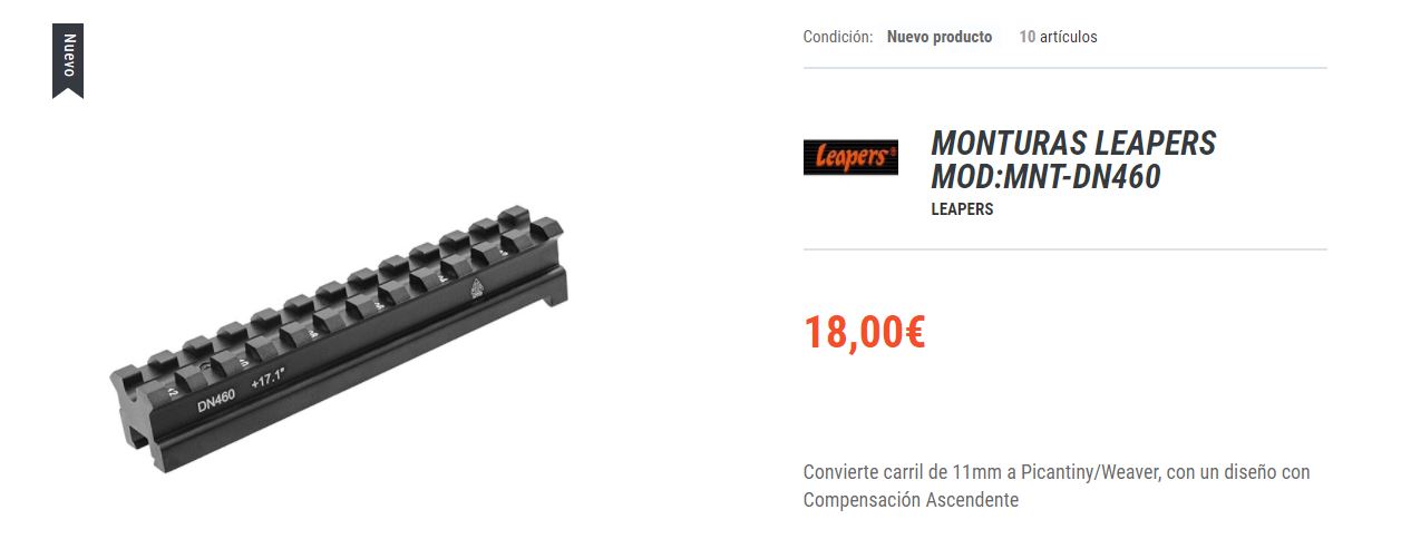 Como la carabina tiene un carril algo escaso de largo, le tengo montado este carril con angulo, especial para carabinas Diana, nunca te quedas sin clicks en altura.....y uso anillas bajas Weaver.