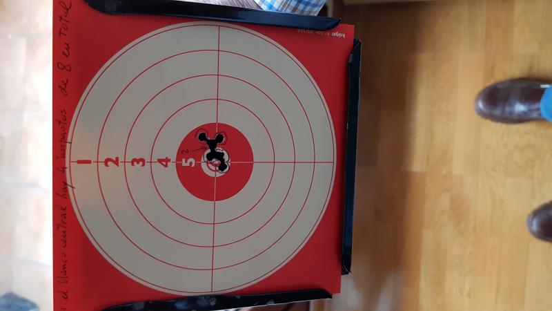 . y otra de hoy por la mañana a 10 metros en galería de tiro sin apoyo y con diana reglamentaria 17x17. Quiero dejar claro que mi pulso no es bueno pues ya soy muy mayor.
