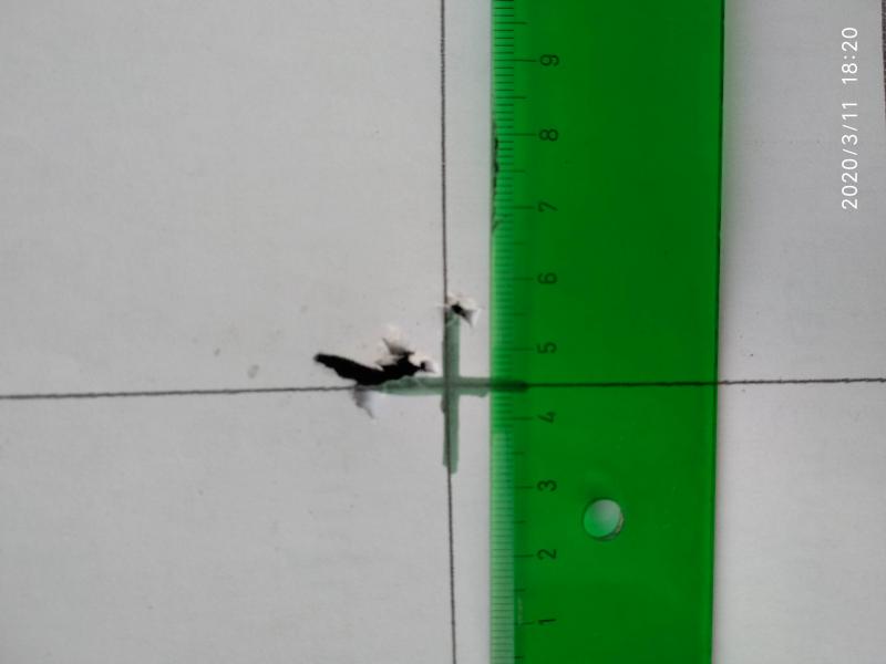 La pistola la he probado poco, no tenía dianas y le he tirado a un papel con una cruz, del primero lo normal supongo, no ha sido vergonzoso pero casi. El segundo he tirado apoyado, aun no he tocado la mira, he corregido a ojo.