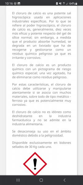 Ya se que hace mas de 2 años...pero creo que puede servir si alguien lo lee a dia de hoy...yo creo que en cloruro es peor que el silice ....segun lei en su dia es una sal creo y es corrosiva...ademas de que creo que no se puede regenerar ..en todo caso si lo usais tendria que ser de grado alimenticio si lo hay y no se si este seguira siendo corrosivo para los metales.....el gel de silice absorve menos pero se puede regenerar y ahora hay unos que cambian de color al cojer humedad...los secas encima de un radiador o en un horno a baja temperatura hasta que vuelva a su color inicial y listo.