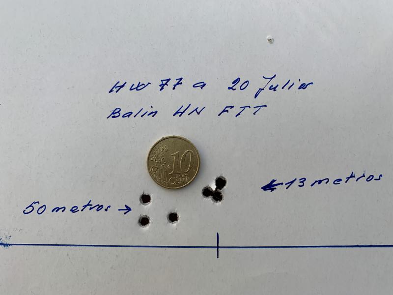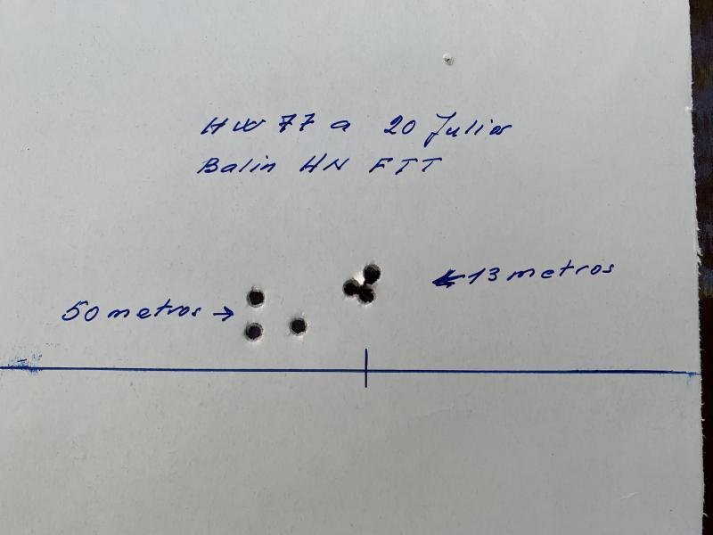 La prueba está realizada con una HW77, a 20 Julios de potencia y con balines NH FTT.