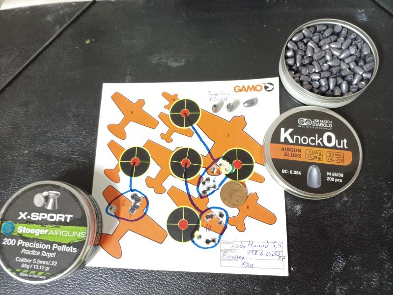 Adjunto diana con 2 tiradas de Slugs y otra de balines de copa.