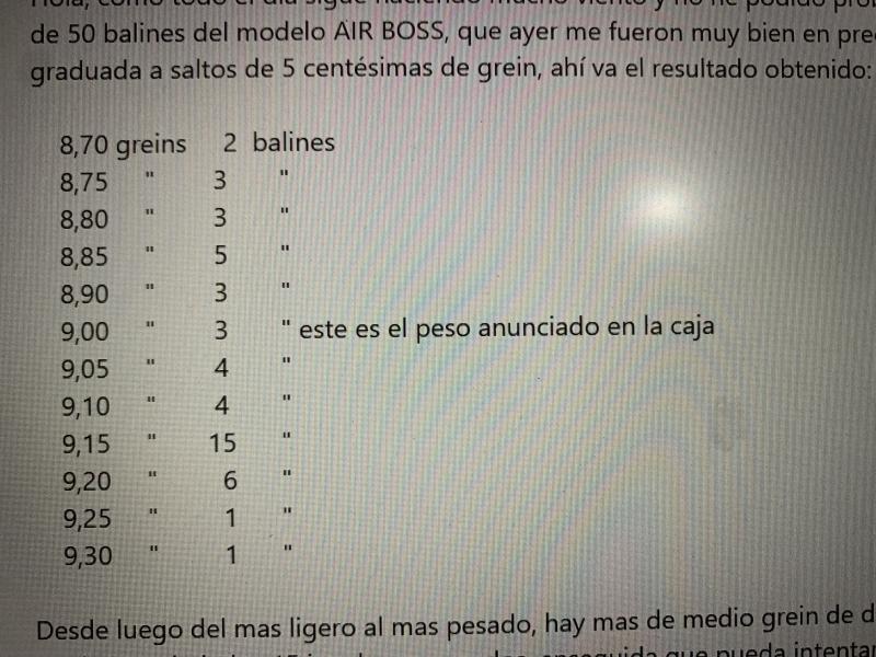 Hola, también se me ocurrió hacer un prueba de peso de 50 balines del modelo Air Boss, no que me habían ido muy bien, el resultado al menos a mi me resultó sorprendente.