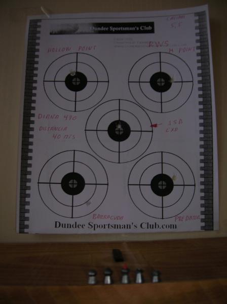 no e podido hacer pruebas de tiro mas lejos ya que no tengo tiempo de salir al campo para ver como se comporta en tiros muy largos os pongo unas imagenes supongo que cualquiera de bosotros tendra mejor punteria pero para orientarse como dispara con diferentes municion,el peso del arma es considerable pero se agradece en el retroceso ya que absorbe parte del golpe del muelle,el visor no quise poner uno de mallor campana para dejar espacio suficiente para la carga y no cargar mas peso siempre e pensado que roza el limite por lomenos para mi de los dos modelos nuevos de diana con la 54 pienso que se an pasado mucha madera,la 470 es mas fina