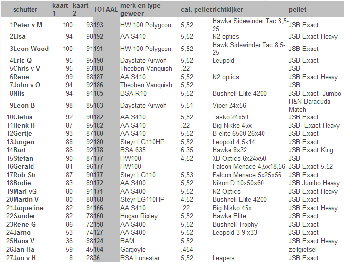 ÉSta genta esta un poco aburrida (como yo) y tienen un campeonato de aire-comprimido a 100m y os pongo los últimos resultados:
