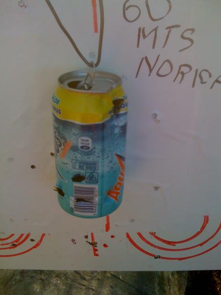 A 30 MTS HE TIRADO TAMBIEN UN AMIGO QUE NON TIENE MUCHA PRATICA,MI TIRO ES EL AGUJERO EN LA RALLA VERTICAL.