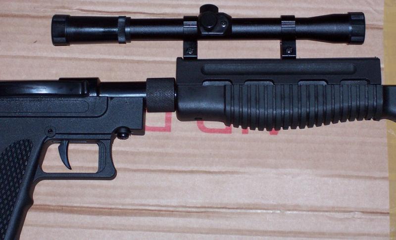 Abrí la caja y encontré un rifle de aire comprimido calibre 5,5 con una mira telescópica.