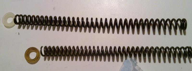 1- El muelle que tenía era el de 28 recortado una espira. El corte del muelle no estaba bien acabado y se introducia en la unión del encamisado ( que no deja de ser una plancha de acero fina doblada dentro del pistón),y de hay el ruido.